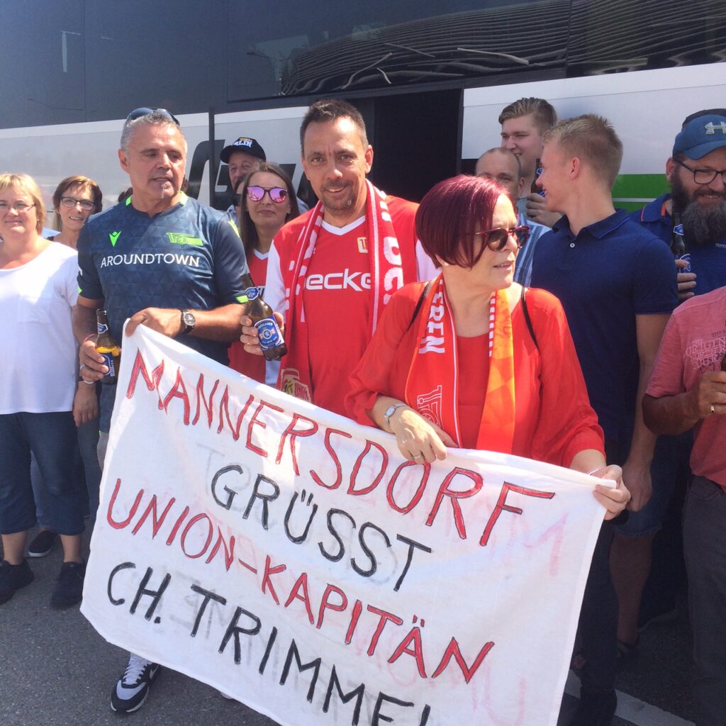 Unser erstes Auswärtsspiel in der Bundesliga führte uns gleich mal in die Fugger-Stadt Augsburg. Unser Leutnant zur See Seku diente nun schon seit einem Jahr im Süden im Stützpunkt Unterallgäu. Daher war es nur zu naheliegend, ihn mit der verantwortungsvollen Aufgabe zu betrauen, unsere Besatzung würdig zu vertreten. Und dieser Tag entwickelte sich zu einem absoluten Höhepunkt. Der Reihe nach: Zugfahrt vom Hauptbahnhof Memmingen bis Mindelheim. Dort eine halbe Stunde Zeit. Verzweifelte Suche nach einem kalten Bier. Nach kurzer Irrfahrt fand er schlussendlich eine Pizzeria, wo er sich mit 3 Bieren eindecken konnte. Im Auto zweier Augsburger waren die kühlen Biere sehr schnell Geschichte. Ankunft Augsburg. Fußmarsch ca. 24 Minuten. Schon bei der Ankunft war die WWK-Arena erkennbar. Nun ja… Unsere Alte Försterei ist schon schön!!! Der Weg zum Stadion war dann äußerst lang. Keine „Tanke“, keine „Abseitsfalle“. Nur Maisfelder etc… Und sooo warm. Völlig unterhopft erreichte unser Leutnant die Spielstätte. Und wen traf er dort? Unseren Seekadetten Nussi! Was für eine Wiedersehensfreude. Also wurde spontan die Last der Verantwortung auf zwei Schultern verteilt. Aber Seekadett Nussi war nicht der Einzige, den er traf. Denn auf der scheinbar hoffnungslosen Suche nach einem kalten Bier kam er zu einem Reisebus aus Österreich. Dort wurde die Situation völlig korrekt beurteilt und unser Leutnant bekam das ersehnte Bier. Doch nicht nur das! Während eines Smalltalks stellte sich alsbald heraus, dass ich mit keinem Geringeren als Pappa Trimmel gerade locker daherplapperte. Und schwupps gesellte sich auch gleich Mama dazu. Fazit: Seku´s Unterhopfung konnte gerade noch rechtzeitig behandelt werden und Papa Trimmi sagte nicht ganz ohne stolz: „Da hoam wa euch oan Gudn gschickt!!“