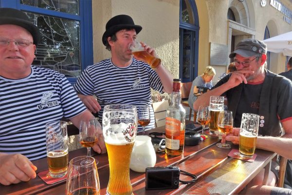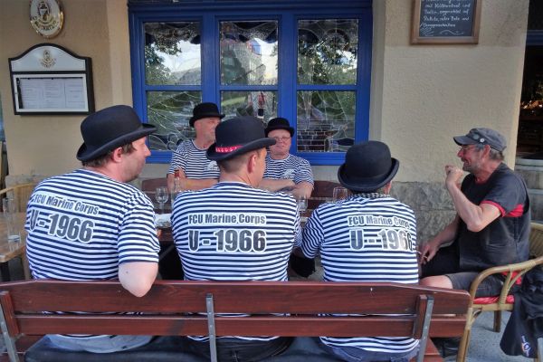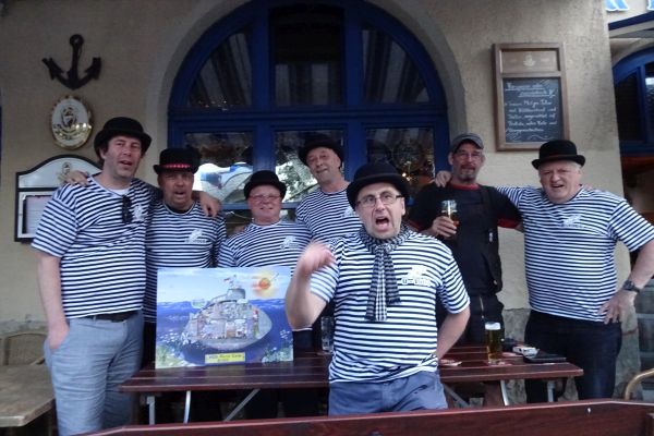 Dann ein erster Aufreger: Smutje Stefan trat dabei mit einer äußerst unüberlegten Aussage ins Fettnäpfchen. Leider ist dem Autor dieses Textes entfallen, was Obermaat Stefan äußerte und was daraus resultierend den unbändigen Zorn der Mannschaft zur Folge hatte. Es wurde jedenfalls sehr schnell und sehr einstimmig beschlossen, Obermaat Stefan zum Untermaat zu degradieren! Das muss MANN erst einmal schaffen: Zu einem Dienstgrad degradiert zu werden, den es gar nicht gibt! Dieser Sachverhalt wurde dann von der Crew auch recht zeitnah bemerkt und nach der anfänglichen Aufgeregtheit wurde die Degradierung zurückgenommen. Obermaat Stefan erkannte seinen Fehltritt und der KaLeu merkte an, er habe keine Lust, einen neuen Dienstausweis auszustellen. Ist doch schön, wenn manche Dinge so einfach zu klären sind!