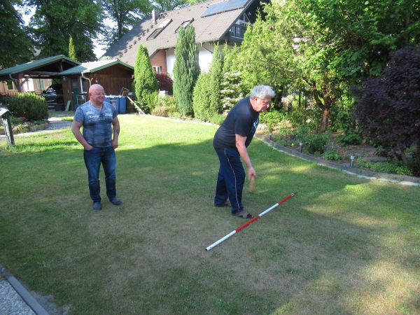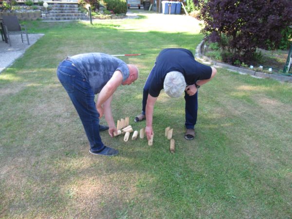 Unsere beiden Leutnants empfingen am Freitag Obermaat Marian. Nach einer kurzen Nachbetrachtung des sehr erfolgreichen, aber auch anstrengenden Abends befahl der KaLeu noch eine Runde „Mölkky“. Dabei ließ er es sich nicht nehmen, persönlich den Rasen zu präparieren. Und bei diesem Spiel zeigte er dann wieder seine wahre Größe und warum er einfach DER KaLeu ist: In den ersten beiden Runden ließ er seine beiden Untertanen gewinnen. Um dann in letzten Partien gnadenlos und ohne Rücksicht auf Verluste zurückzuschlagen. Leutnant Seku und Obermaat Marian hatten nicht den Hauch einer Chance und gratulierten ehrfurchtsvoll unserem Chef!