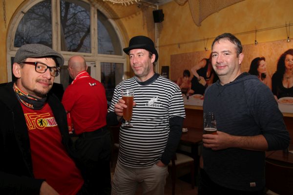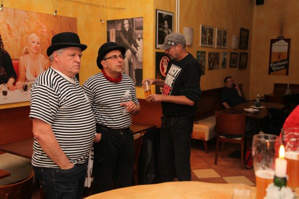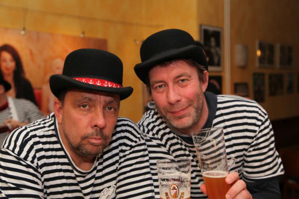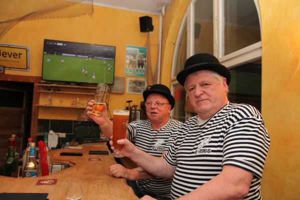 Der Reihe nach. Unser Allgäuleutnant machte sich kurz vor 700 auf die Spur. Bis Halle/Saale verlief alles nahezu planmäßig. Doch dann sorgte ein Sturmtief für eine komplette Einstellung des Bahnverkehres. Die Zeit rann dahin. Unser Leutnant wurde dann doch etwas unruhig. Und das gleich in doppelter Hinsicht: 1. Das Bier wurde knapp!! 2. Er hatte selbst die Tagesordnung festgelegt und das Eintreffen aller Marines für 1800 befohlen. Unser Kaleu hatte kurz die Idee, mit dem Auto nach Halle zu fahren. Zum Glück entschied er sich dagegen. Unser Leutnant recherchierte, was eine Taxifahrt kosten würde. Ok, das war wohl auch eine Schnapsidee. Irgendwann setzte der Zug seine Reise fort und der Herr Leutnant war rechtzeitig im Marinestützpunkt. Hier warteten schon der Kaleu, die beiden Obermaate Stefan und Marian, sowie Maat Christian. Auch ein paar weitere Gäste waren gekommen, um im Matrosenstübchen das Spiel der EISERNEN Fußballgötter in Rotterdam zu genießen. Nach ein paar Begrüßungsworten und einigen ersten Bierrunden traf auch Maat Nussi mit Sam im Schlepptau ein. Der Rahmen war gebildet. Maat Tilo war in das Hauptquartier in Berlin Köpenick abkommandiert worden.