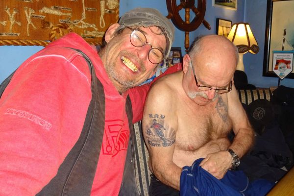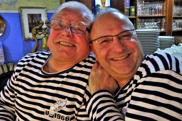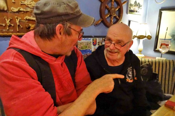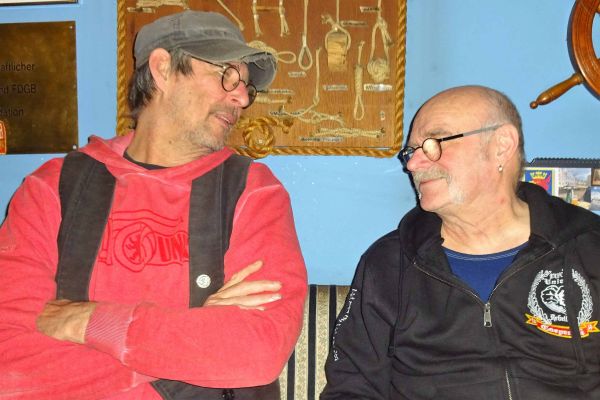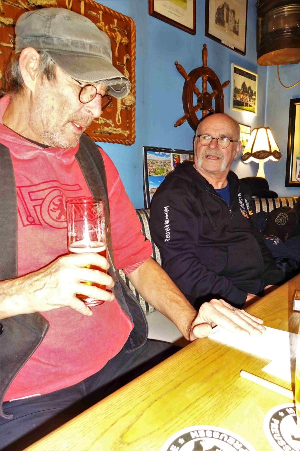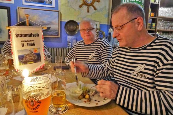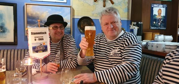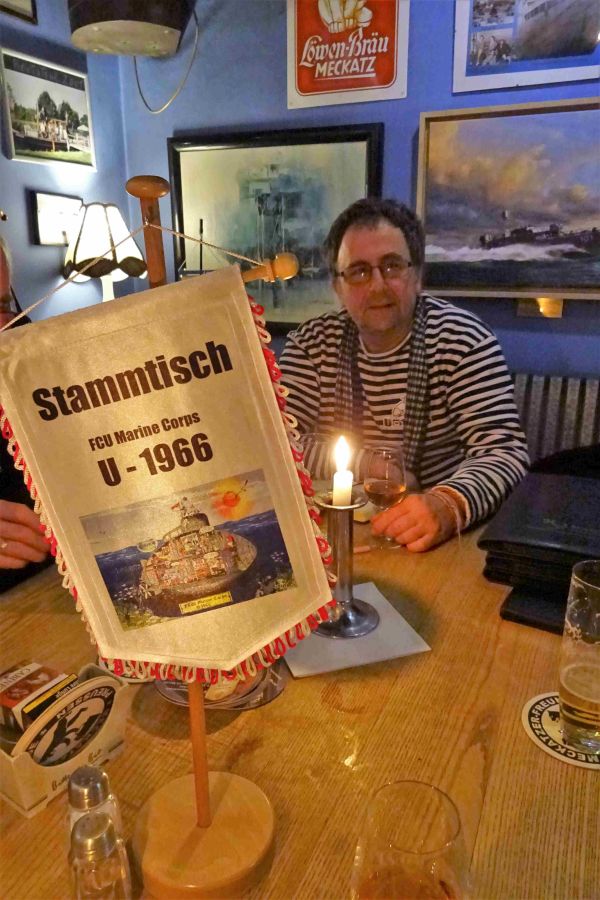 Unser Februarstammtisch erlangte im Vorfeld des Augsburgspieles und unseres Leseabendes eine besondere Bedeutung. Bereits Tage vorher kam die Anfrage von unserem Seekadetten Nussi, ob wir nicht wir auch Praktikant Sam begrüßen wollen. Er hätte zwar nicht viel Zeit, weil er noch mit „Opi“ ein Date hatte. Selbstverständlich hat Sam immer einen Platz an unserem Stammtisch. Sein U-1966 Bild hängt bei jedem Crewmitglied an einem exponierten Platz – verdientermaßen! Also Zusage erteilt. Etwas später direkte Anfrage bei mir. Sam hat sich überlegt, Opi gleich mitzubringen, wenn das ginge. Dann wäre sein Abend nicht so zerrissen. Alles klar und wir sind ja auch offen für gleichgesinnte Kampfgefährten. Was ich anfangs nicht wusste: Opi heißt eigentlich Norbert Szupriczynski und sein Nachname hat mit DDR und Union-Geschichte geschrieben. Sein Vater war ein Sportoffizieller in der DDR und war dabei, bei der Gründung unseres FC-Wundervoll Union. Er als Sohn durfte damals dabei sein. Mehr Geschichte geht nun wirklich nicht.
