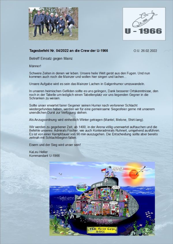 Unser Kaleu hatte für diesen Tag folgenden Tagesbefehl ausgegeben: