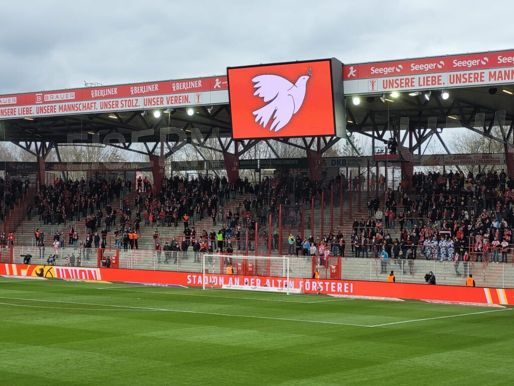 Im Stadion angekommen, leuchtete auf der digitalen Anzeigetafel auch gleich die „Weiße Friedenstaube“. Maat Tilo war guter Dinge, dass es heute endlich mal wieder mit einem „Dreier“ klappen wird: