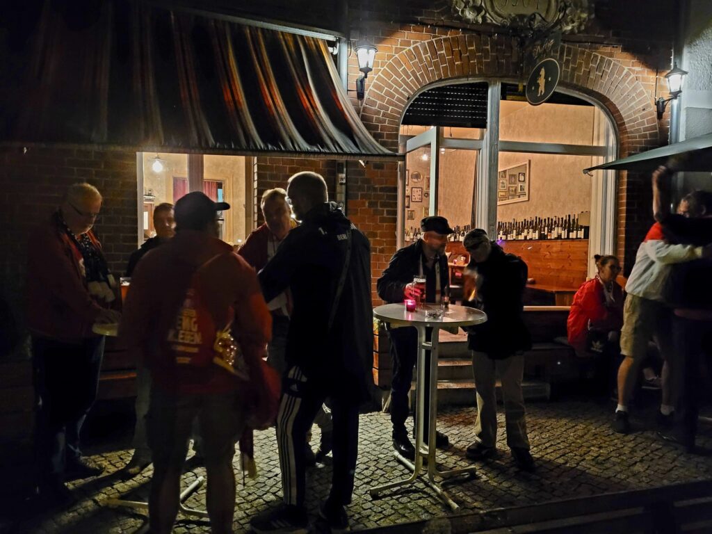 Meine Gefechtsvorbereitung ergab ja bereits, dass unser belgische Kontrahent schwierig zu packen sein wird. Allein sich mit königlich und Union zu bezeichnen zeigt von einer gewissen Arglist gepaart mit einer gehörigen Clevernis. Zum Ablauf selbst: Ich verfolgte den ganzen Tag aufmerksam den Wetterbericht. Wie sich herausstellte war er sehr präzise. Den ganzen Tag dieser Regen, der zum Anstoß wirklich wie vorhergesagt aufhörte. Dadurch war aber der Anmarschweg äußerst feucht. Der ÖPNV hatte damit ebenso zu kämpfen. Aber das hält einen KaLeu nicht von seinem Kampfauftrag ab. Also Auftanken der Reserven im Coe 2.0 mit Seekadett Nussi, unterstützt vom Praktikanten Sam und ab in die Kampfarena. Unioner zahlenmäßig mit 20-facher Überlegenheit auf den Rängen. Auf dem Kampfplatz dann die Pleite. Losunglück ! Ganz schlechtes Omen. Erst dieses aufreibende Wetter, dann die erste Halbzeit mit der Waldseite im Rücken. Die Zeichen standen schlecht. Wahrscheinlich hat jeder Kämpfer diesen Nachteil im Kopf und hindert ihn seine optimale Kampfkraft zu entfalten. Erste Halbzeit vertrödelt und folgerichtig Gegentor kassiert. Gegner spielt mit unserer erprobten Taktik und wir können uns so nicht selbst besiegen. Nach dem Seitenwechsel dann eine bessere zweite Hälfte mit Chancen, die nicht genutzt wurden. Michel noch nach grobem Faul mit Rot bedacht (96. Minute, hat er Probleme mit dem Ablesen eines Zeitmessers?). So ging dieser Kampf zwar verloren, aber die anhaltenden Lobgesänge sollten unseren Kämpfern Motivation und Kraft für die kommenden Aufgaben geben. Diese Reaktion beeindruckte dann auch unseren Gegner nachhaltig. Also verlies ich die Arena um mich mit den verloren gegangenen Kämpfern wieder zu vereinen – im Coe 2.0 selbstverständlich. Mit unserem geschätzten Seekadetten und dem ewig lernenden Praktikanten konnten wir das Erlebte unserem Erfahrungsschatz hinzufügen. So hat ein Beinahsieg auch sein Gutes, wenn man gewillt ist daraus zu lernen. Jedenfalls tranken wir einige absolute Scheidebecher mit Bananengeschmack, die von haltlosen Mitkämpfern mit allzuvielen grünen Ungehörlichkeiten begleitet wurden. Nur das Bewusstsein sich rechtzeitig auf die folgenden Schlachten vorbereiten zu müssen führte zu einem Ende ohne Schrecken. Ich war 0030 im Bett und mein Wecker konnte 5 min vor 0500 an seinem todbringenden Werk gehindert werden. Äußerst pünktliche Ankunft im Stützpunkt konnte gewährleistet werden. Die nächsten kölschgierigen Geißböcke warten auf ihre Zähmung. Wir werden bereit sein…