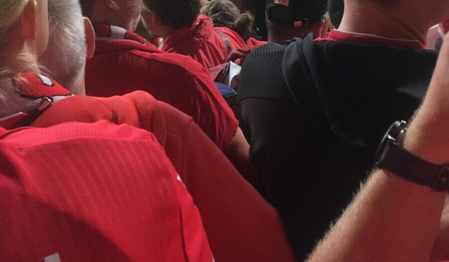 Und dann kam die Protagonisten: Unsere Mannen in den schnieken rot-weiß gestreiften Heimtrikots. Dann kam unsere Hymne. Was für eine Gänsehaut. Diese verschwand danach kurzzeitig bei der EL-Hymne. Naja, watt mutt, datt mutt. Wohl. Oder so.