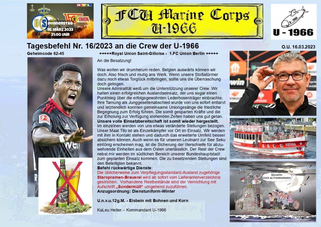 Nachdem wir im Hinspiel in unserem Wohnzimmer ein hart umkämpftes 3:3 erzielen konnten, waren die Hoffnungen sehr groß, in Belgien zu bestehen und einmal mehr dort zu gewinnen. Dass wir das können, bewiesen wir am 03.11.2022, als wir auswärts mit 1:0 gewonnen hatten. Mit nur einem Tor mehr als der Gastgeber würden wir in das Viertelfinale der EUROPA-LEAGUE einziehen! Nach dem Pragausflug waren unsere Marines abermals gefordert. Ihnen blieb nicht viel Zeit zur Regeneration! Aber warum sollte es ihnen besser ergehen als den Protagonisten auf dem GRÜNEN GELÄUF? Bereits um 0535 ließ KaLeu Heller seine Mannen „STRAMMSTEHEN“ und unsere Marines erhielten folgenden Tagesbefehl: