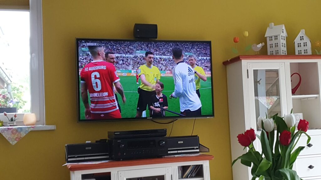 Weiter dann um 16:34. Union nun von links nach rechts ließ den Ball in eigenen Reihen. Der FCA dachte gar nicht dran, ihr Spiel zu ändern und sich locken zu lassen. Daher wieder erste kleinere Gelegenheiten. Aber weder Jerome (nach Flanke von Aissa), noch ein Eckball von Josip brachten die Augsburger in arge Bedrängnis. Ja und schon schlug es ein in unserem Tor: Minute 53, Flanke, Volleyabnahme, rumms. Gemeinsame Schockstarre. Ein Tor aus dem Nichts. Aber es waren ja noch gut 40 Minuten Zeit. Dennoch hinterließ dieser Volleytorpedo deutliche Spuren. Unsere Angriffsattacken blieben zunächst plan- und ziellos. Dann auch noch GELB für Aissa. KaLeu Heller trat nun mit Admiral Fischer in Kontakt und es wurden folgende Wechsel vorbereitet: Jordan für Beere, Jamie für Jannik und Andras für Aissa. Gespielt waren inzwischen 69 Minuten. Weitere 3 Minuten später GELB für Paul. In der 74. Minute fasste sich Jamie ein Herz und ballerte auf das FCA-Gehäuse. Sein Geschoss verfehlte aber nur wenige Zentimeter das Ziel. Dann kam Svenne für Paul. Also n bissel mehr Offensive. Aber die Zeit rann dahin. Auch Trimmi kam. Jerome verließ den Platz. In den letzten 10 Minuten eine Flanke nach der anderen. Aber es wurde nie ernsthaft gefährlich. Zumeist stand ein gut aufgelegter Koubek im Weg. Nach 4 Minuten Nachspielzeit war es dann soweit: Schiedsrichter Badstübner pfiff das Spiel ab. Unsere Crew saß wie versteinert vor der jeweiligen Glotze. Allgemeine Ratlosigkeit. Dennoch behielt wenigstens der KaLeu klaren Kopf und befahl sogleich per WhatsApp: „Männas! Diese kleine Schlacht heute haben wir verloren! Aber es gibt keinen Grund, die Köpfe in das Wasser zu stecken! Ein jeder überdenkt gefälligst seine heutige Arbeit und zieht für das Spiel am kommenden Samstag die richtigen Lehren!!!“