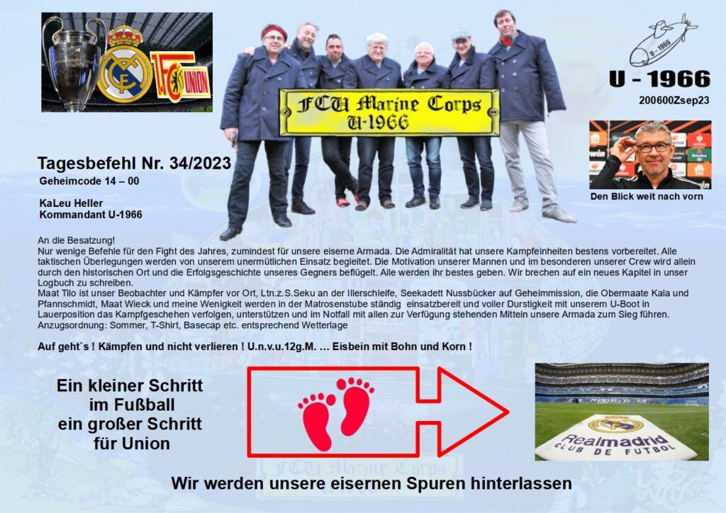 Bevor hier gleich ein irre guter Spielbericht vom Seekadett Nussimann nachzulesen sein wird, muss natürlich die Form gewahrt werden und die Chronologie der Geschehnisse gehören nun unweigerlich dazu. Daher zunächst der Tagesbefehl 34/2023 vom KaLeu. Verkündet am Spieltag in aller Frühe um 0518: