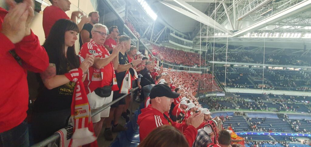 Es waren all die Unonerinnen und Unioner, die mich seit Tagen mit Bildern, Texten und Filmchen ihrer oft abenteuerlichen Anreisen in die spanische Hauptstadt erfreuten. All jene, die uns Daheimgebliebene irgendwie dabei sein ließen, wie sie in Madrid unsere Lieder singen. Auf diversen Plätzen, in Kneipen oder gar dem Schinkenmuseum, vorm Stadion – überall Eiserne, die es offenbar selbst direkt vor der sprichwörtlichen Höhle des Löwen nicht fassen konnten, was da gleich abgehen würde.