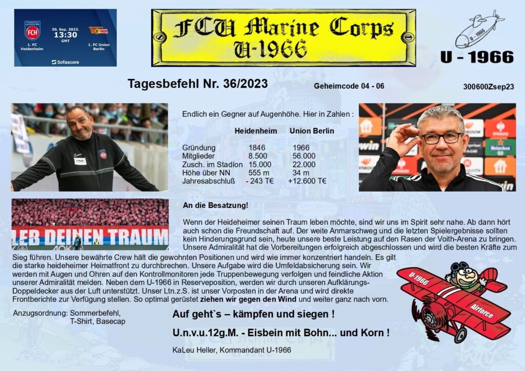 Heute nun auswärts in Heidenheim. Nach einer kleinen Durststrecke von vier Niederlagen am Stück sollte es heute nun endlich mal wieder mit einem Dreier klappen. KaLeu Heller sah sich zu einer besonderen Maßnahme gezwungen und befahl unserem Leutnant, die Illerschleife zu opfern und vor Ort im Osten Baden-Württembergs Stellung zu beziehen. Der Rest der Crew erhielt jeweils mündlich ihren Einsatzort. Und so sah dann der Tagesbefehl aus: